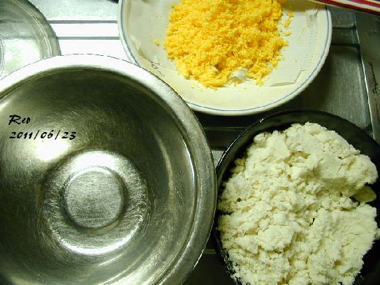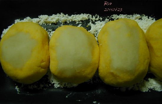 裏ごしした黄身と白花あん半分を混ぜる→この時点で2種のあんのもとができる